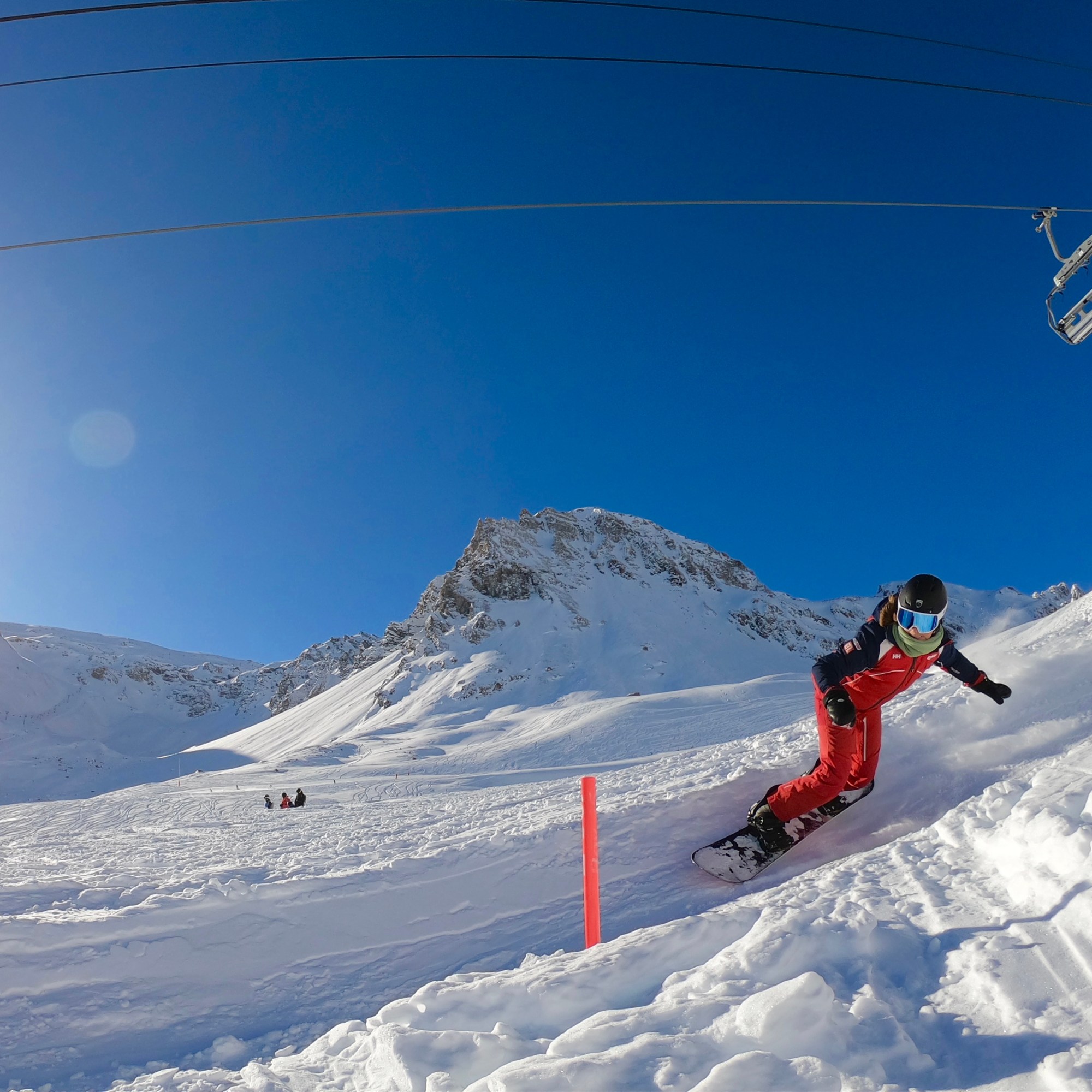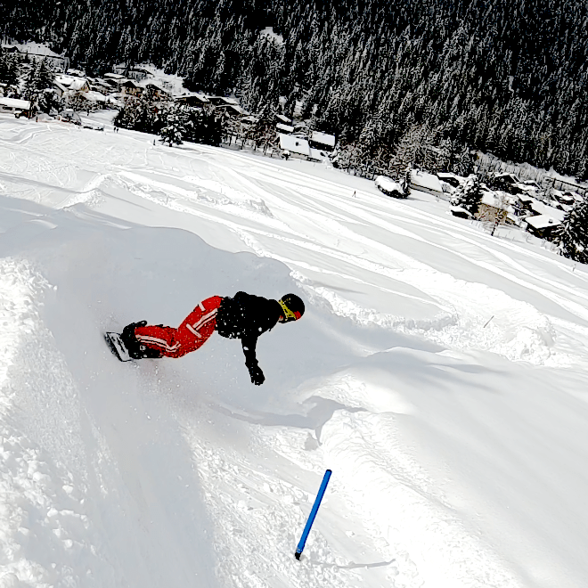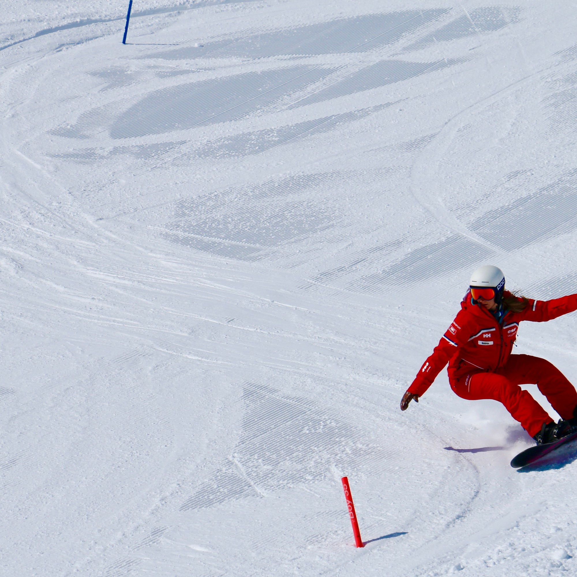 Travail sur piste pour améliorer votre niveau en snowboard.